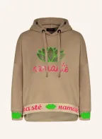 miss goodlife Hoodie mit Schmucksteinen: BEIGE / NEONPINK / GRÜN