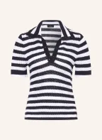 monari Strick-Poloshirt mit Schmucksteinen: DUNKELBLAU / WEISS