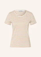 MORE & MORE T-Shirt mit Glitzergarn: WEISS / GOLD / CAMEL