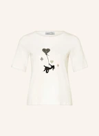 MORE & MORE T-Shirt mit Schmucksteinen: WEISS / SCHWARZ