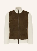 PAUL & SHARK Strickjacke im Materialmix mit Primaloft®-Isolierung: OLIV / WEISS