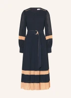 REISS Kleid TORI mit Plissees: DUNKELBLAU / HELLBRAUN