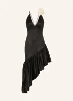 SANDRO Cocktailkleid mit Rüschen: SCHWARZ / CREME