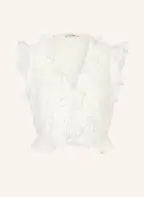 SANDRO Cropped-Blusentop mit Lochspitze und Schmucksteinen: WEISS