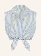 SANDRO Cropped-Top mit Schmucksteinen: HELLBLAU / GOLD / CREME