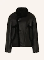 SANDRO Lederjacke mit Schaffell: SCHWARZ