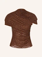 self-portrait Mesh-Top mit Schmucksteinen und Cut-out: BRAUN