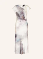 SWING Satinkleid: PETROL / WEISS / HELLLILA