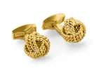 Unsere traditionellen geflochtenen Manschettenknöpfe bestechen durch klare, elegante Linien und fließende Formen und sind ideal für alle, die einen minimalistischen Stil bevorzugen. Jedes einzelne Kabel erhält durch die gelbvergoldete Oberfläche des Basismetalls einen hochglänzenden Effekt. Die Vorderseite jedes Manschettenknopfs misst 13 mm Länge x 13 mm Höhe x 11 mm Tiefe.