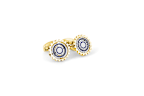 Entdecken Sie die Orbit Gear Manschettenknöpfe in Gelbgoldplattierung und blauer Emaille. Diese eleganten Manschettenknöpfe bestechen durch ihr gyroskopartiges Design mit drei unabhängig voneinander drehbaren Ringen, die ineinandergreifen und so eine Kugelform nachbilden, um ihre Ausrichtung in jede Richtung beizubehalten.