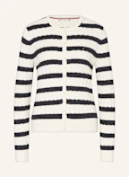 TOMMY HILFIGER Strickjacke: WEISS / DUNKELBLAU