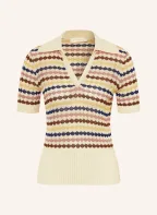 ZIMMERMANN Strick-Poloshirt: CREME / DUNKELBRAUN / DUNKELBLAU