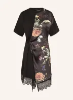 ALLSAINTS LANA LACE dress in a mix of materials with lace: BLACK / LIGHT RED / GREEN