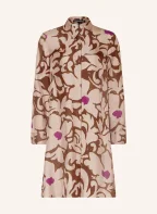LUISA CERANO Silk shirt dress: LIGHT BROWN / BROWN / PURPLE
