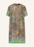 ETRO zijden jurk: BEIGE / PETROL / ZWART