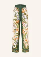FARM RIO Marlene-broek NATURE SAND met linnen: ECRU / DONKERORANJE / DONKERGROEN