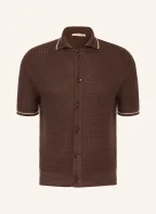 FIORONI Gebreid overhemd met extra slanke pasvorm en linnen: MARRON FONCÉ
