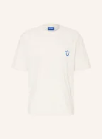 HUGO T-shirt NAGUTEE van badstof: ECRU / BLAUW