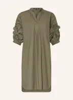 LUISA CERANO Jurk met opengewerkte kant en 3/4-mouwen: KAKI