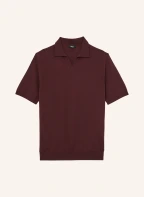 REISS Gebreid poloshirt DUCHIE van merinowol: MARRON FONCÉ