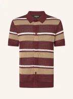 STRELLSON Gebreid overhemd ANDER Slim Fit: DONKERROOD / LICHTBRUIN / WIT