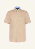 TOMMY HILFIGER Korte mouwen overhemd Regular Fit met linnen: LICHTBRUIN