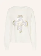 Grace Sweatshirt with linen and sequins: WHITE / SILVER / GOLD