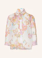 HERZENS Silk blouse with 3/4 sleeves: WHITE / PINK / ORANGE