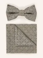 WILVORST Set: Bow tie and pocket square: KHAKI / WHITE