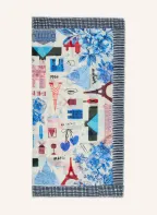 CODELLO szal: NIEBIESKI / ECRU / CIEMNOCZERWONY