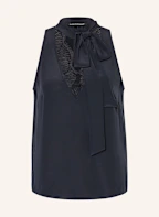 LUISA CERANO Bluzka bez rękawów z wiązaniem pod szyją i koronką: GRANATOWY